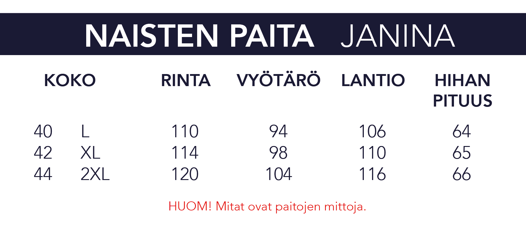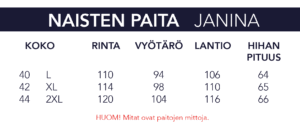 Paidan materiaali on 65% polyesteri, 35% puuvilla, Easy Care.