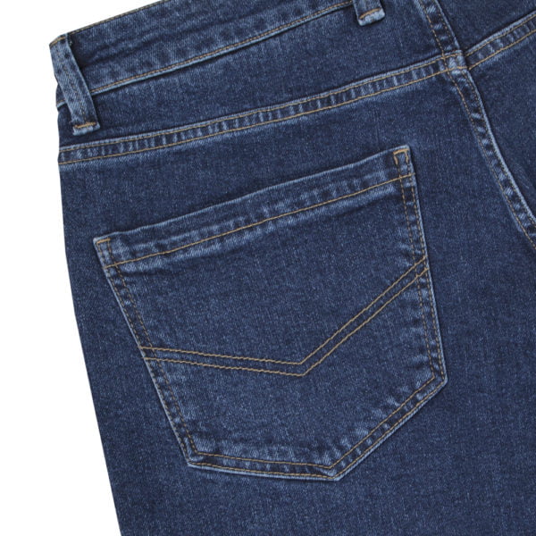 Farkuissa on klassinen vyötärö ja suorat lahkeet.