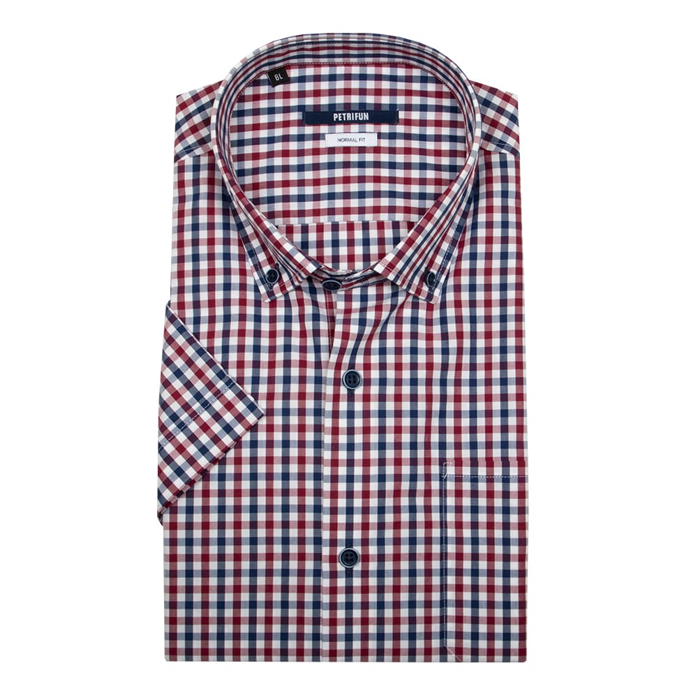SINI-PUNARUUDULLINEN NAPPIKAULUSPAITA, lyhythihainen