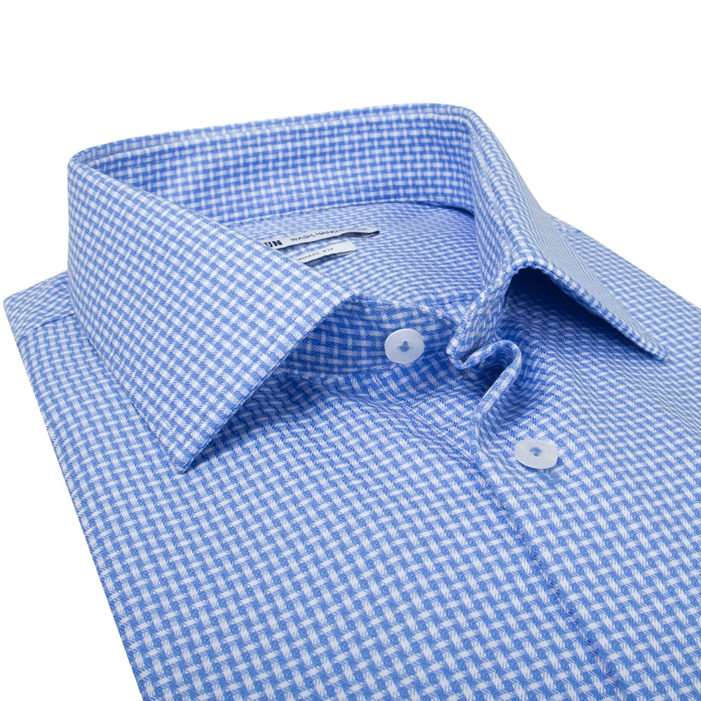 Klassinen korinpohja kuvioinen kauluspaita on helposti yhdisteltävissä niin puvun, neuleen kuin rennompien housujen kanssa. Hillitty, pienikuvioinen kangas tekee kauluspaidasta ajattoman ja pitkäikäisen luottopaidan. Paidan materiaali on laadukasta 100% puuvillaa ja Wash, Hang & Wear viimeistely takaa, että paita on silittämättä siisti. Paidan hiha- ja sivusaumat on teipattu. Teipatut saumat pysyvät siisteinä pesun jälkeen, eikä niitä tarvitse silittää.