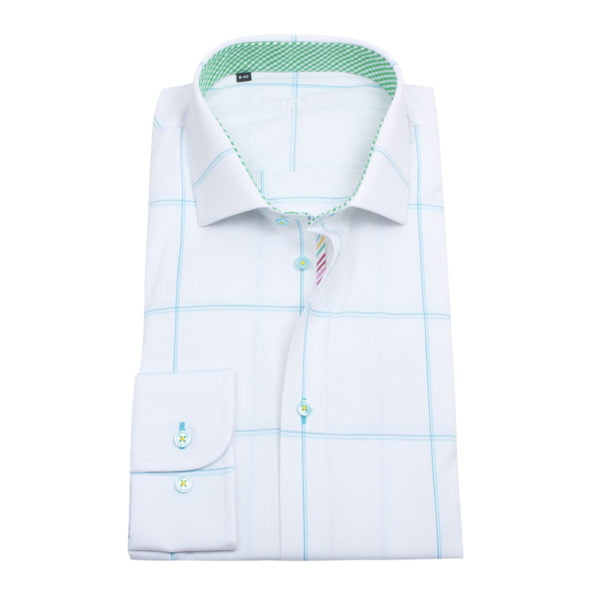 VALKO-TURKOOSI RUUDULLINEN KAULUSPAITA 2771-45