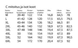 C – väljä mitoitus.